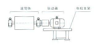 WD(Ⅱ)型外裝式減速滾筒由滾筒體、驅(qū)動器及電機支架三部分。滾筒體主要包括滾筒殼體、支座及裝在滾筒內(nèi)的減速器組成。驅(qū)動器主要包括電動機、聯(lián)軸器、液力偶合器,逆止器、制動器等部件。電機支架是用型鋼焊接而成,用于安裝電動機和護罩,用戶也可按需要自行設(shè)計制造。